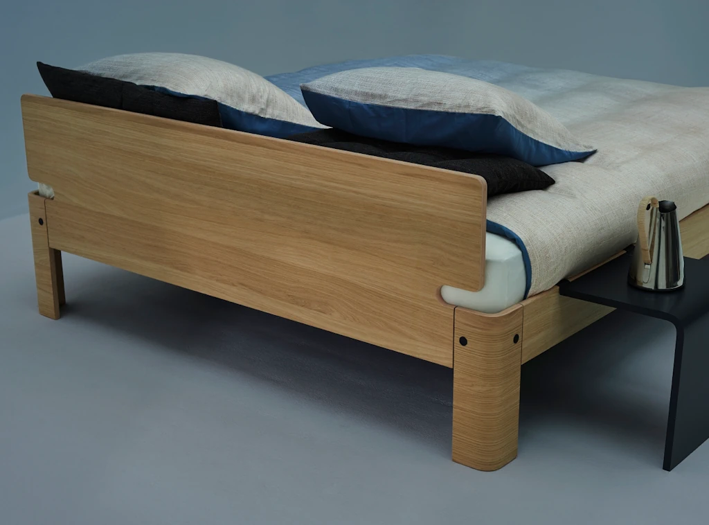 • Nachttisch aus Buchenschichtholz kann überall am Auronde Bett platziert werden.