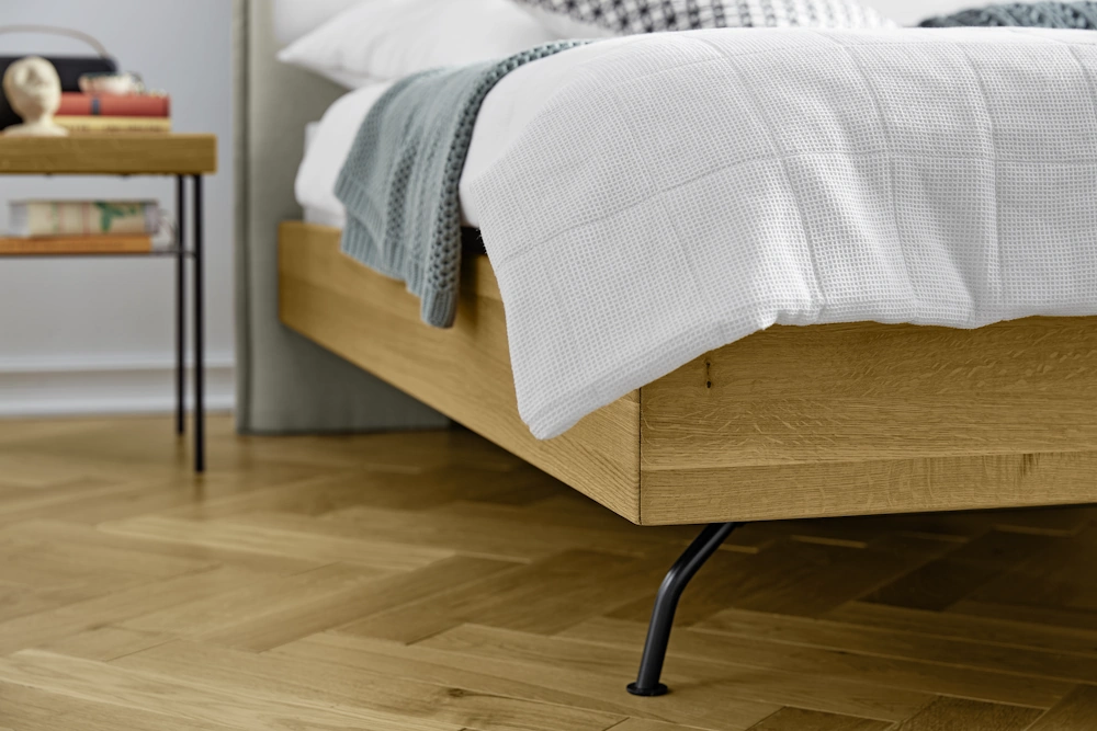 Bettgestell: der Bettrahmen ist aus massiver Eiche gefertigt