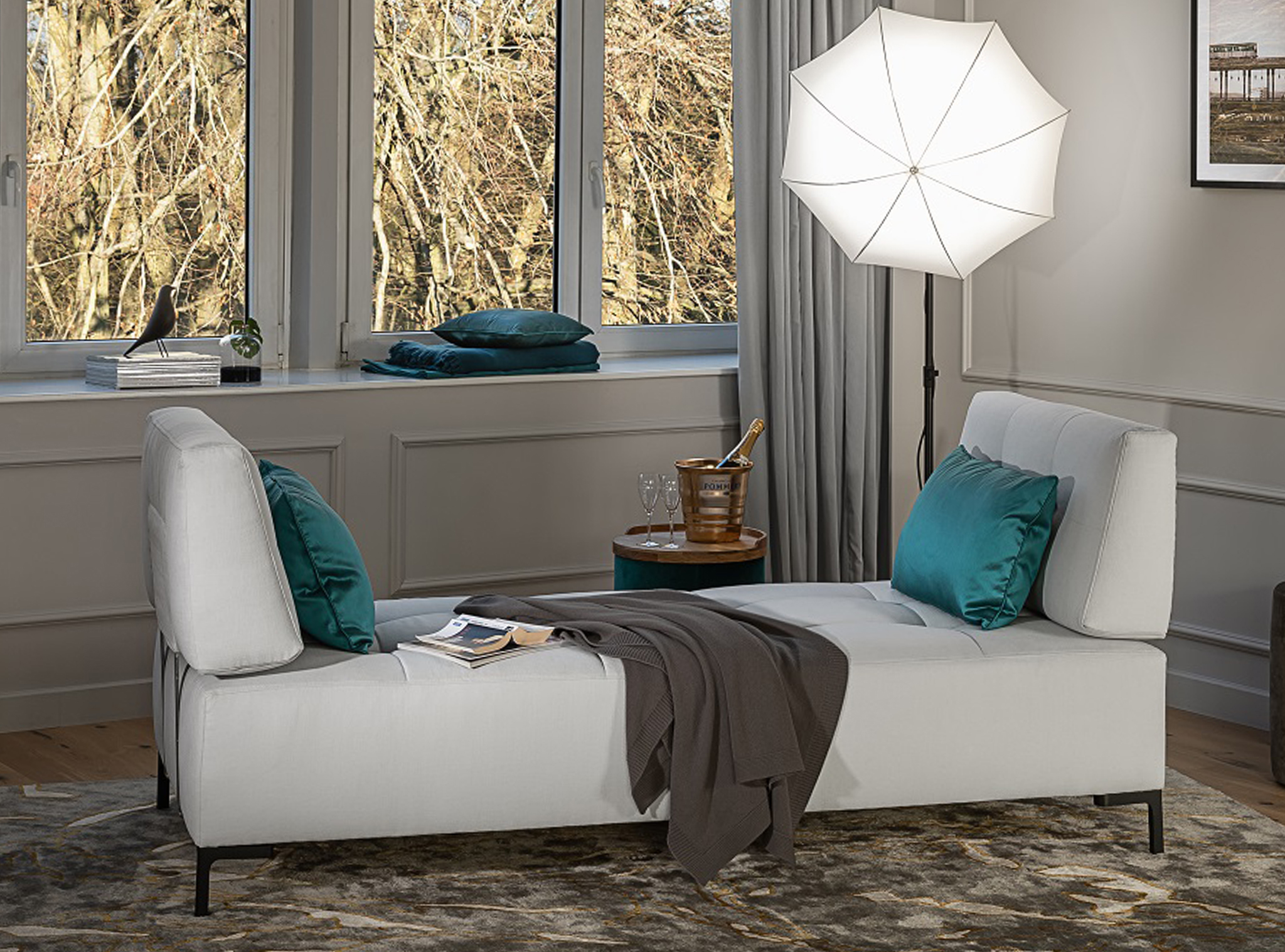 - Stoff: Auf den Bildern ist das Day Bett „Silence“ in der Kategorie B zu sehen. Natürlich können Sie individuell nach Ihren Wünschen verschiedene Stoffqualitäten und Farben wählen.